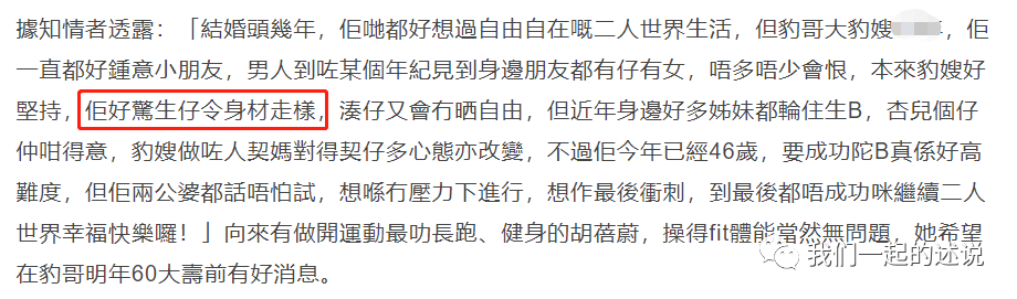 见老公如此执着,胡蓓蔚最终心软了,只是那时候的她,年纪已经不小,努力了很久都没怀上。幸好,两人没有因此而影响感情