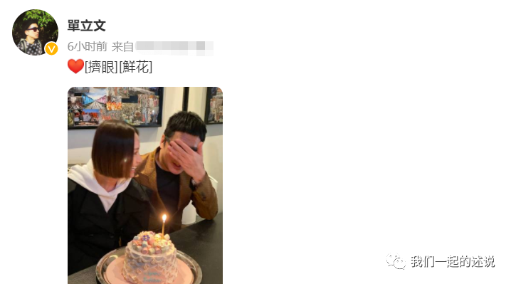 11月12日,“西门庆专业户”单立文在个人社交账号上晒出一张照片,为妻子胡蓓蔚庆祝50岁生日。