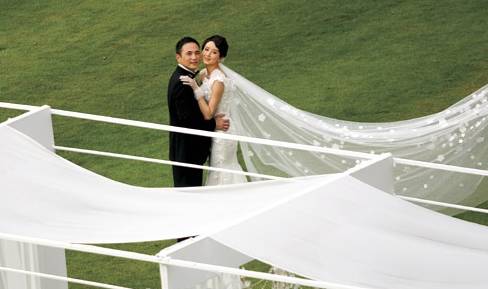 两人的婚礼也是马来西亚娱乐界和商业界的头号大事,上千位当地各界名流参加,席开150多桌,直升机航拍全程,主场地在金马皇宫下的高尔夫球场。