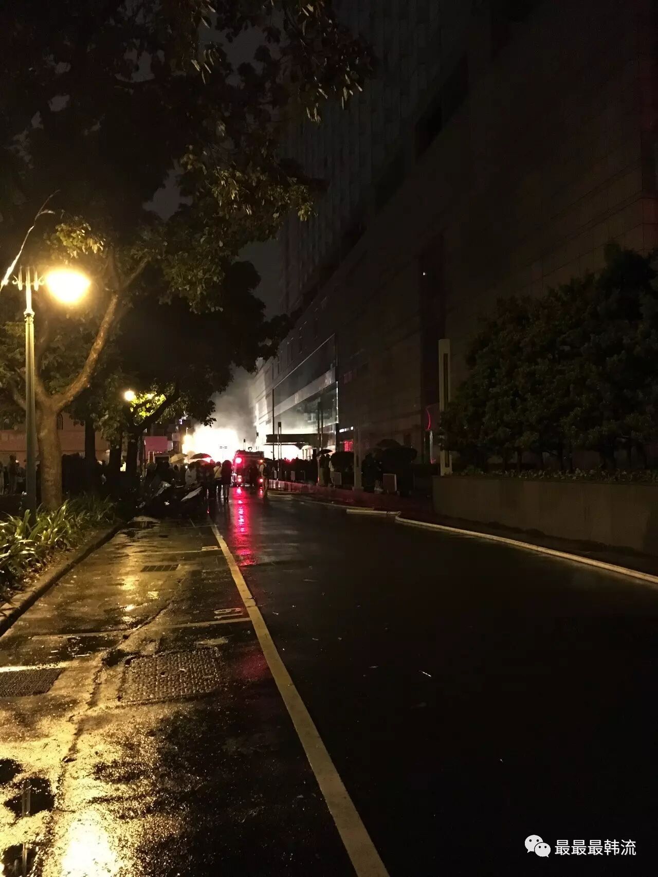 经纪人在逃出酒店后,先是在ins上更新了火灾现场救火的图↓