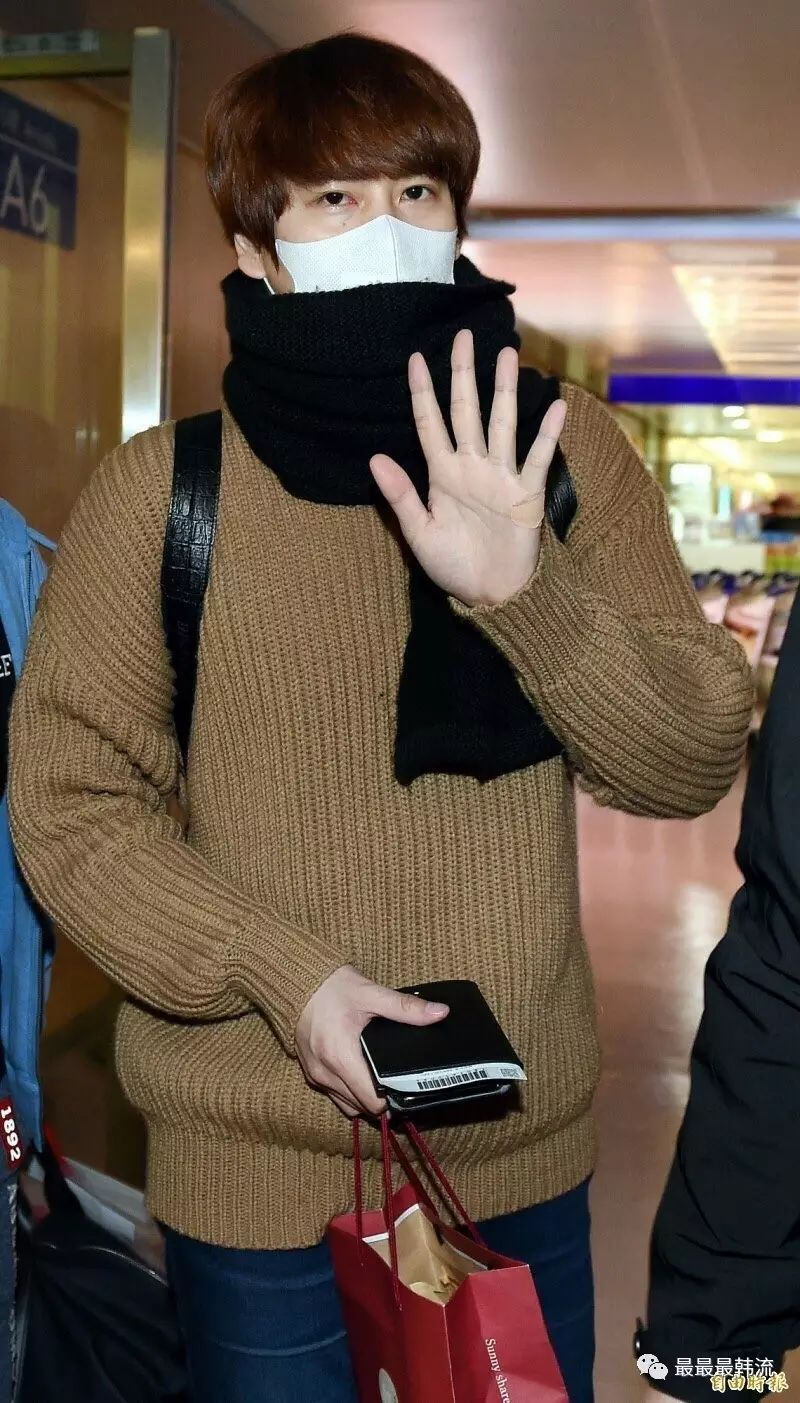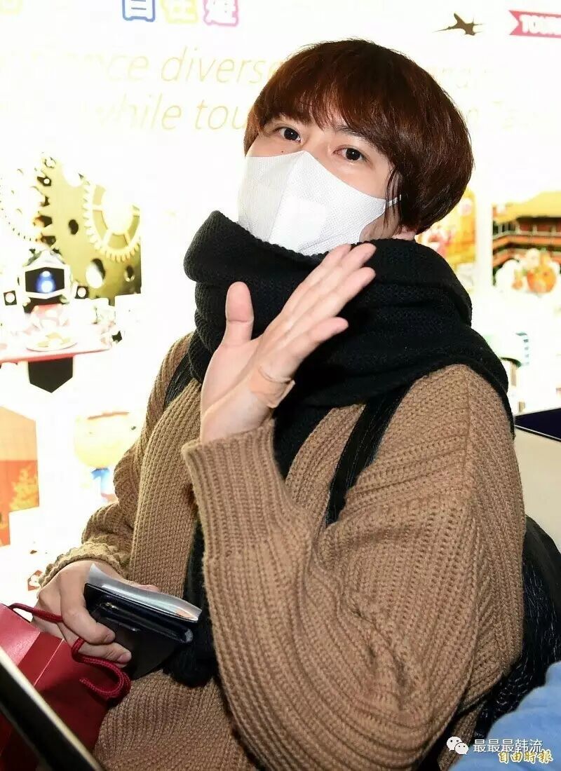 到达台湾后,圭贤的气色还不错↓
