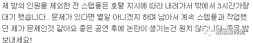 觉得不会有什么大问题,选择要留在房间和工作人员工作,是我的问题。演唱会顺利结束,希望不要有不好的混乱了…祝大家晚安!