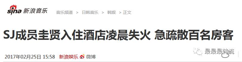 俗话说的好…天有不测之风云。2月25日凌晨,圭贤所居住的酒店居然意外失火了↓