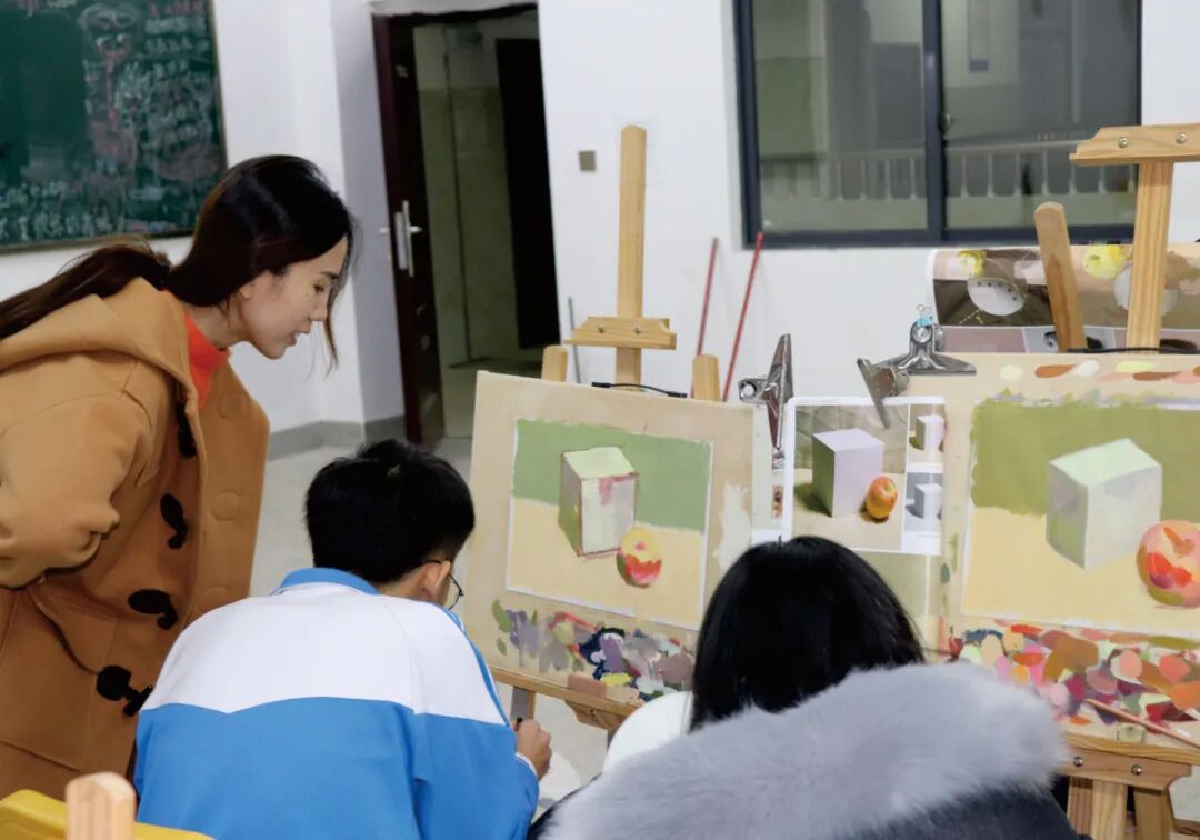 我校美术教师指导学生进行创作