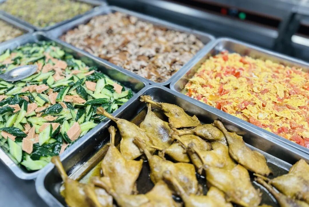 餐饮质量无小事,学生安全大于天。学校拥有完善的后勤餐饮管理团队,聚香阁环境温馨、舒适,饭堂菜品丰富多样、营养搭配全面,为学生多元化的就餐需求提供了更多选择。