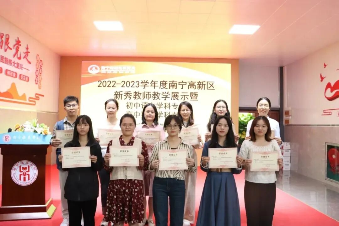 学校韦羽晨老师在南宁高新技术产业开发区教育局组织的2023年南宁高新区中小学德育微课教学“精彩一课”比赛中荣获高中组特等奖,屈航老师在2023年南宁高新区中小学信息技术与学科教学深度融合优秀课例评选活动中获一等奖,黄明华老师撰写的论文《浅析新课程背景下如何做好高中英语学困生转化工作》荣获2024年全国评比一等奖,韦少玉等教师荣获全国基础教育优秀教学设计及课件比赛二等奖,钟晓君、罗婷婷等数十位教师先后在省区市级各类教学竞赛中获奖……