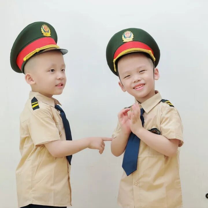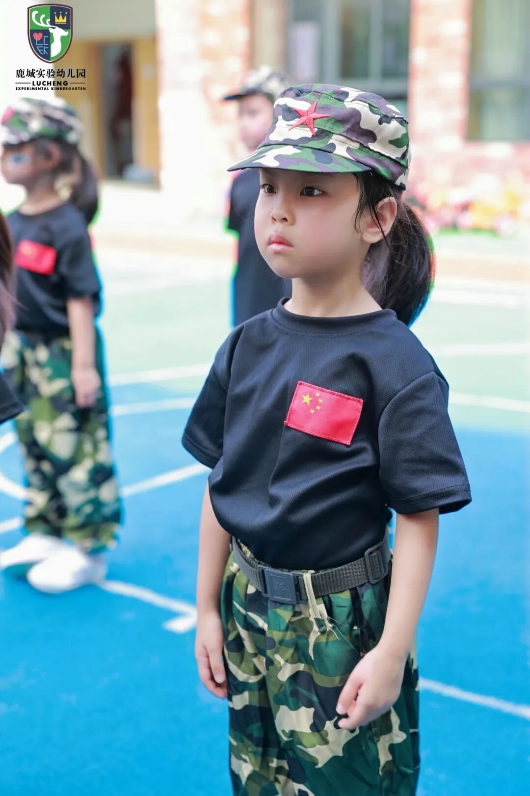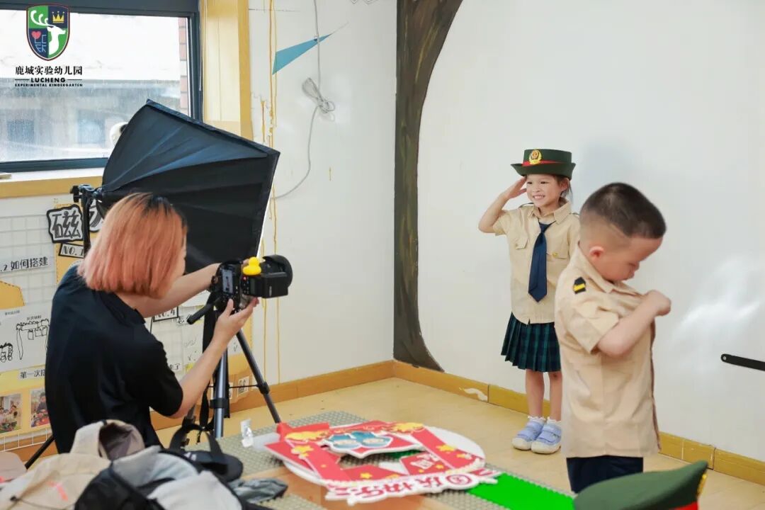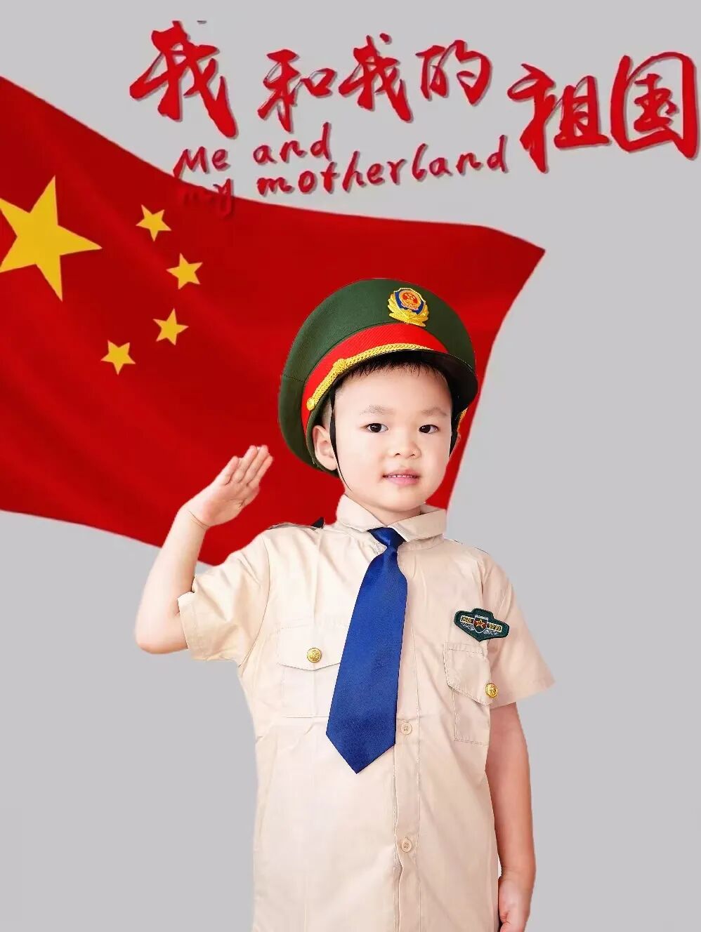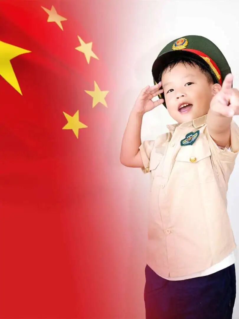 看!穿上军装瞬间变身“小军人”。一张张灿烂的笑脸与鲜红国旗相映成趣,摄影师快门一按把大家模样完美定格~