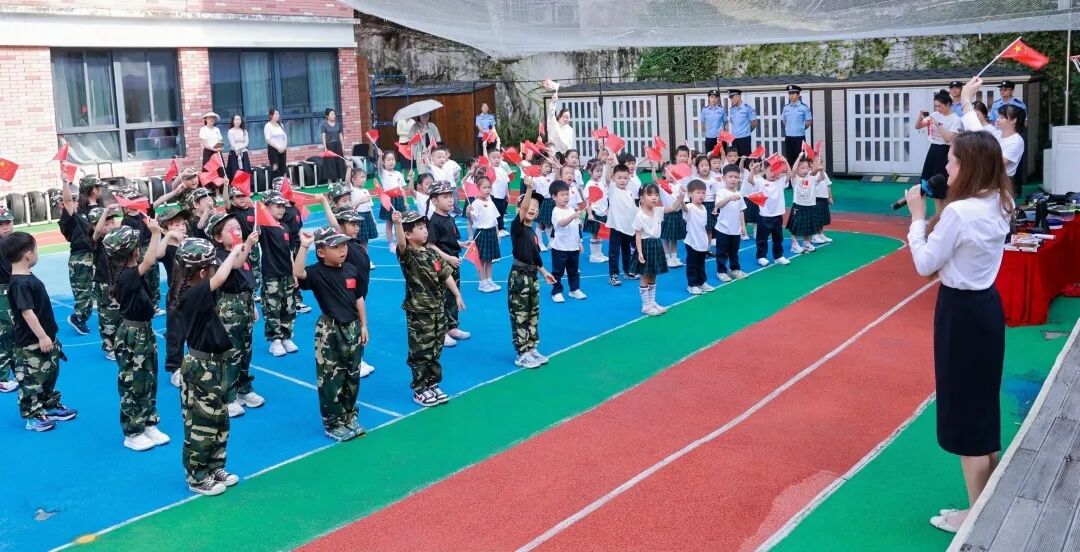 五马派出所民警化身“安全教官”,耐心指导孩子们进行队列训练,培养纪律意识与阅兵精神。