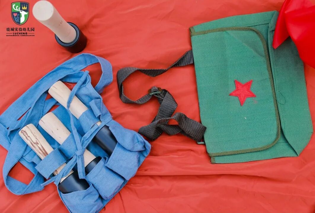 随着郑老师仿真军用水壶、旧书包一亮相,小鹿们就好奇地围过来。听着“小英雄送鸡毛信”的故事,学着“背书包”“拿水壶喝水”,模仿英雄使用物品的动作,在角色体验中感受英雄品质。