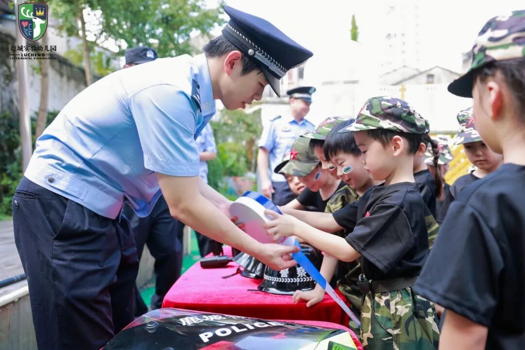 在民警的看护下,小鹿们还亲手体验了部分装备,好奇地触摸盾牌,拿起喊话器“喊话”,现场欢笑声与惊叹声不断。