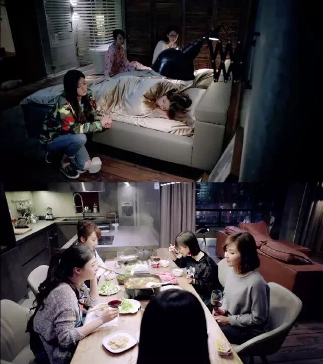 而在《欢乐颂》当中,则是五个女孩分住在一个名叫“欢乐颂”的中档小区22楼同一层的三套房,其中替家里还债的资深外企HR樊胜美(蒋欣饰)、毕业没多久的文秘樊莹莹(杨紫饰)、实习生关雎尔(乔欣饰)三人合租一套房,而海归金领安迪(刘涛饰)、富家女曲筱绡(王子文饰)各自居住另外两套房。