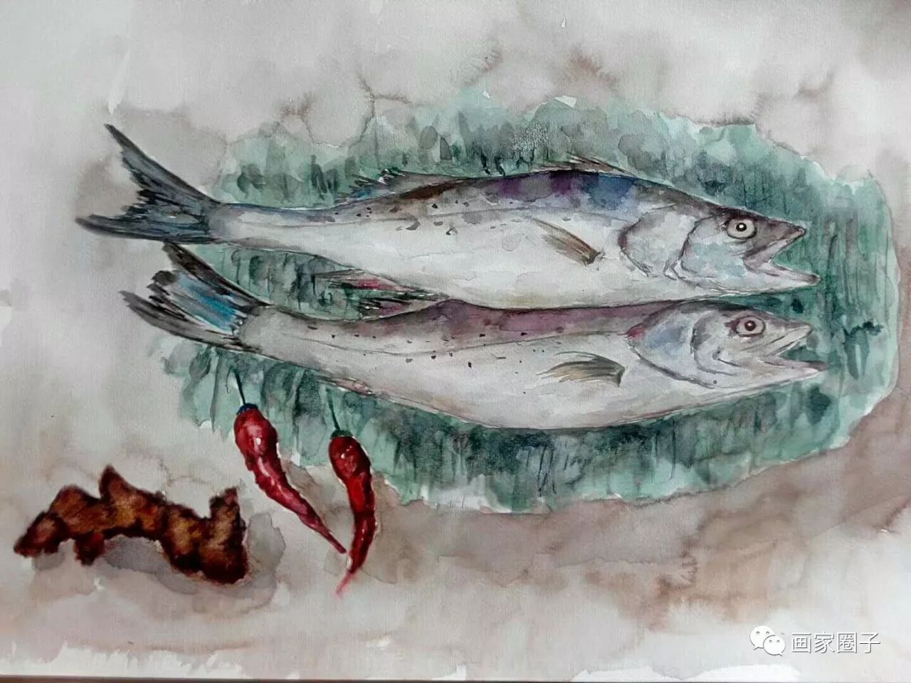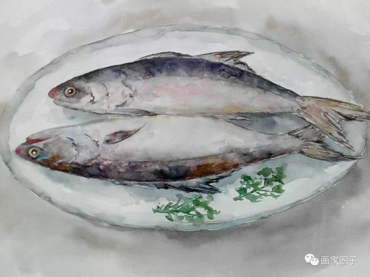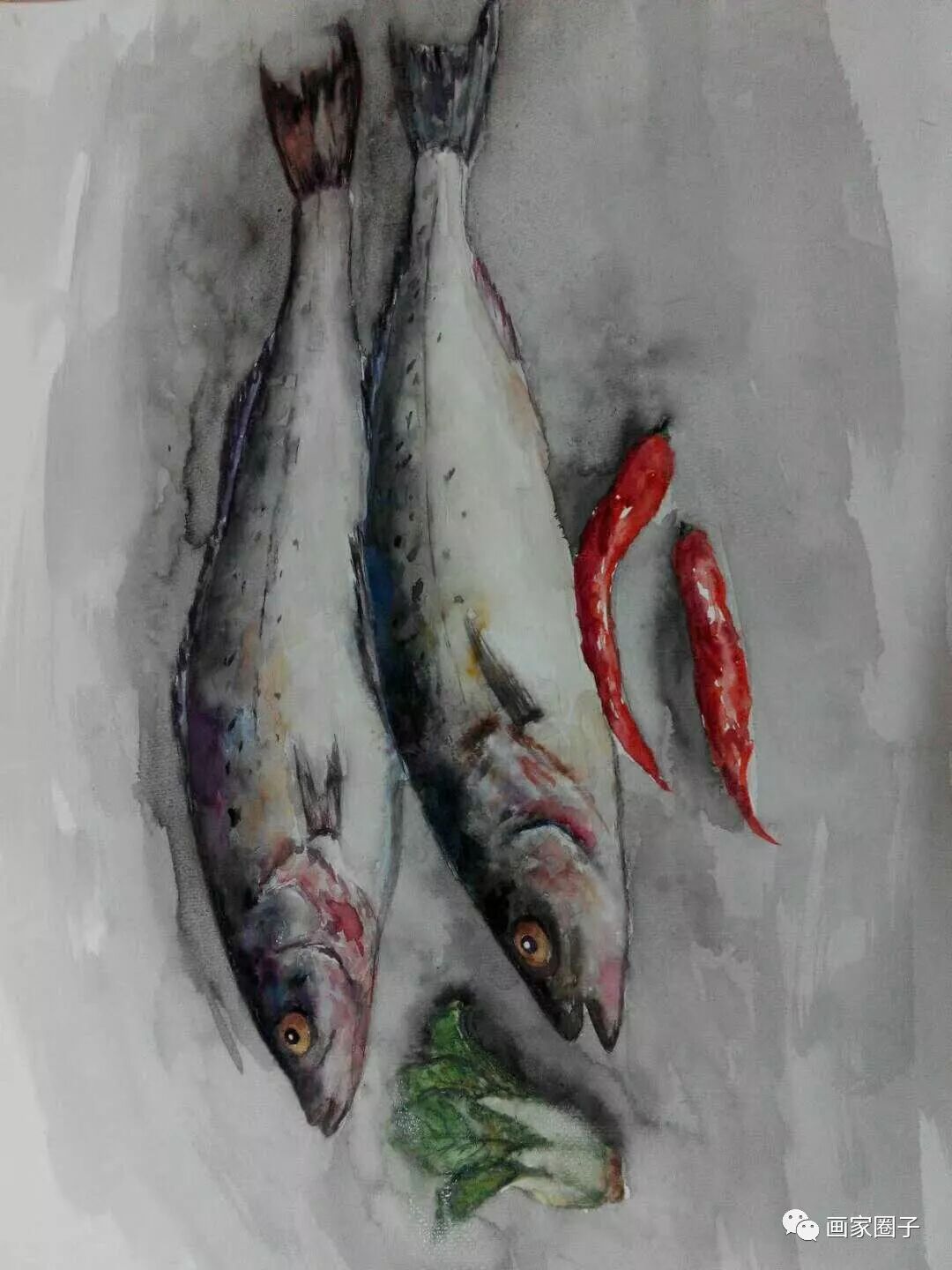 作者陈工,水彩,年年有鱼系列