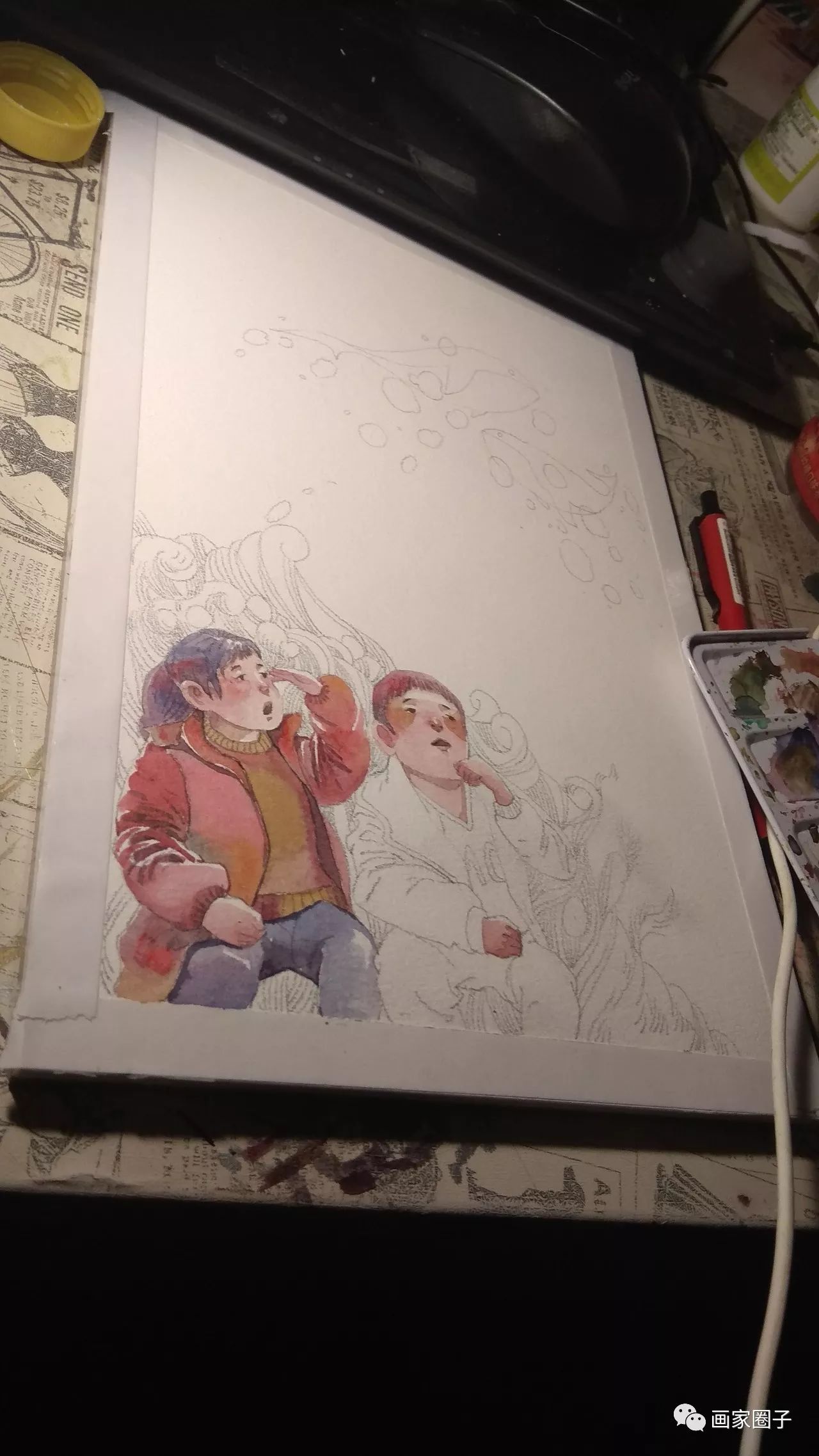工具:水彩,圆珠笔