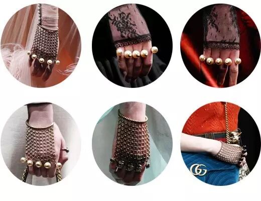 在2016秋冬米兰时装周GUCCI秀场,我们看到了类似银索金铃的配饰,这些精美的珍珠搭配在了金属网状护手上,保证了灵气的同时也显示出了个性女子的刚烈。话虽这么说着,不过在欣赏完之后再看看那价格,保证你神清气爽,再也不做梦了。