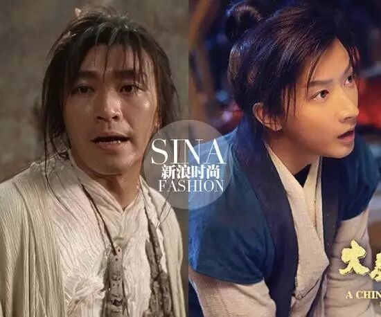 毕竟是颜值太高很难不去关注演员的脸,就是不这么专业你能怎样。来我们对比一下电影中的主角,印象中周星驰在电影《大话西游》中总是一副邋遢的模样,棉麻质感又略带褶皱的宽大袍子,被至尊宝的一双草编鞋彻底划入凡间,时尚度那就见仁见智了,只能用一句平庸的:戏服与人物性格十分服帖来形容。
