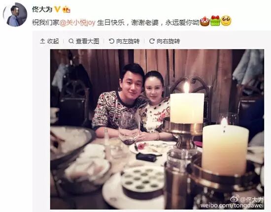 昨日,佟大为在微博晒出为妻子庆生的照片,还深情写道:“祝我们家@关小悦joy生日快乐,谢谢老婆,永远爱你呦。”照片中,夫妻二人紧紧坐在一起,更摆出噘嘴姿势欲亲吻,十分甜蜜。