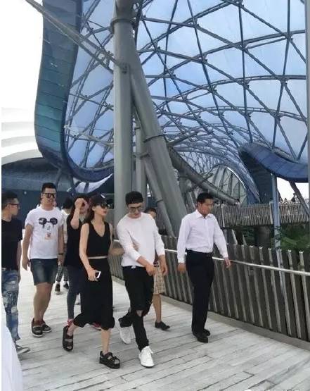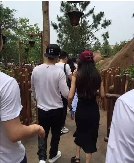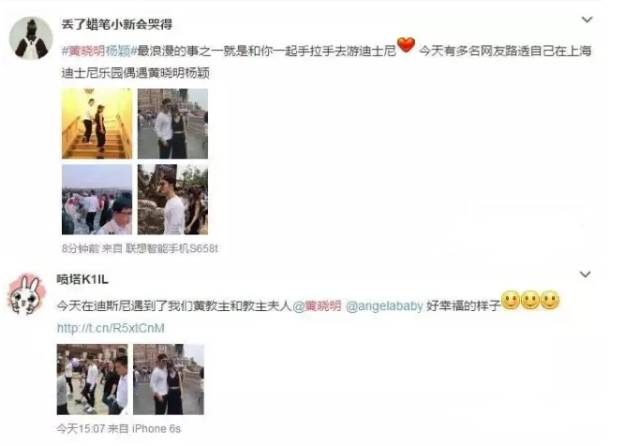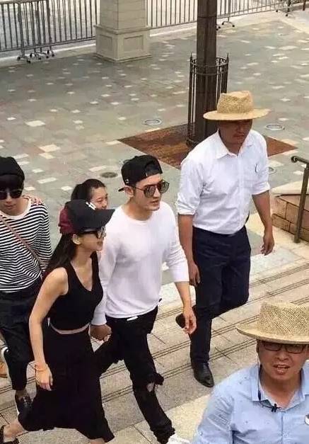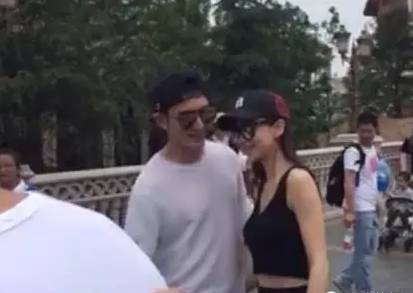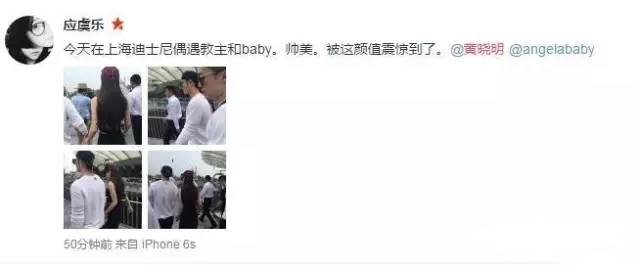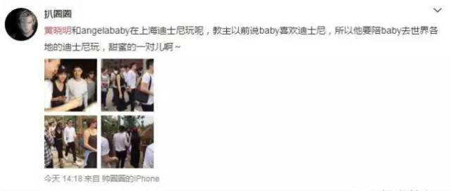网友晒出自己在迪士尼碰到黄晓明baby夫妇的照片,