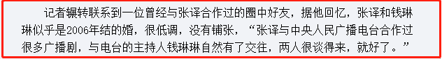 事业成功之际,张译的婚姻大事也很圆满,据说他早就和中央人民广播电台《九州艺苑》主持人钱琳琳领证结婚,很低调,很幸福。