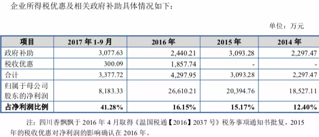 即便是远低于广告费的净利润,背后都还有政府补贴撑腰。2014至2017年,香飘飘收到政府补助分别达2297万元、3093万元、2440万元、3149万元。