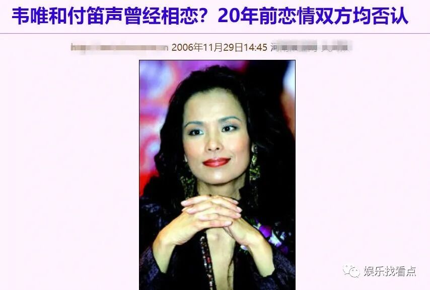 翻看以前的报道,我们发现,2006年时曾有网站曝出韦唯与歌手付笛声相恋过两年。但后来有媒体曾追问付笛声,他立马矢口否认,而韦的经纪人则说不知情。
