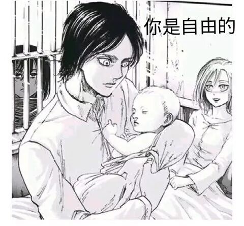 循着漫画故事一路走来的情感理念,大概可以感受到,当这句【你是自由的】说出之时,是怎样一种百战余生、千帆过尽、荡气回肠、尘埃落定的怆然与寂寥。从艾尔迪亚人的角度,对一个新生儿说其是自由的,这个【自由】意味应该就是【平等】。艾尔迪亚人不再是一注射药剂就会爆炸变大的怪物,可以受到和所有正常人类一样的对待。进击奋战而来的自由不是激进的,是很温和的状态。