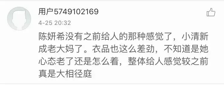 把这些留言一条条读过去,无非:一就是觉得陈妍希比陈晓大四岁,是“老女人”了,老牛吃嫩草;二就是觉得陈妍希胖,是个“小笼包”所以颜值不行;三就是听谣言说陈妍希怀过孩子,所以不配跟任何人结婚...