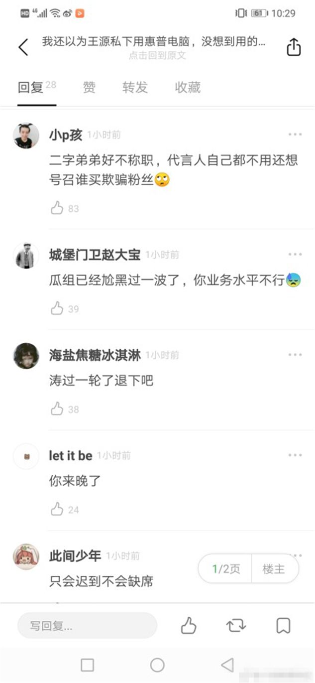 这已经不是王源第一次被质疑不专业了,此前代言惠普笔记本电脑的时候就曾被喷“没有契约精神”。