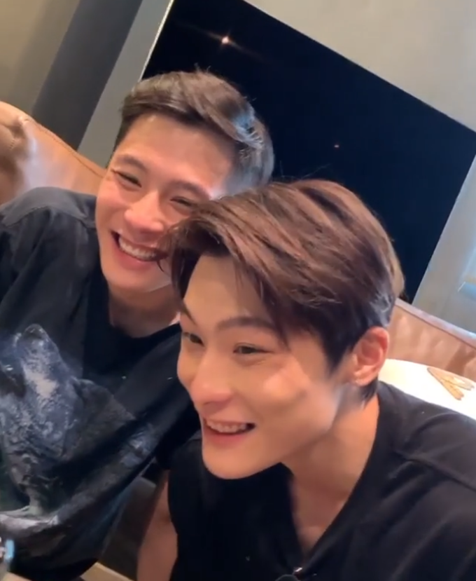 曝光的第一张近照中,兄弟俩一起对着镜头做着“挑眉”的动作,表情很是可爱。汤君慈和汤君耀今年已经25岁了,2个小伙子明显遗传了父母的好基因,长得十分的帅气。