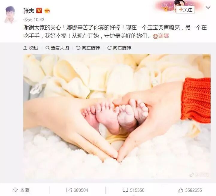 张杰正式升级当爸爸了!