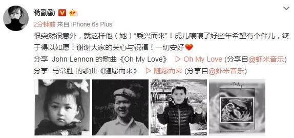 她在微博上说虎儿终于有伴了