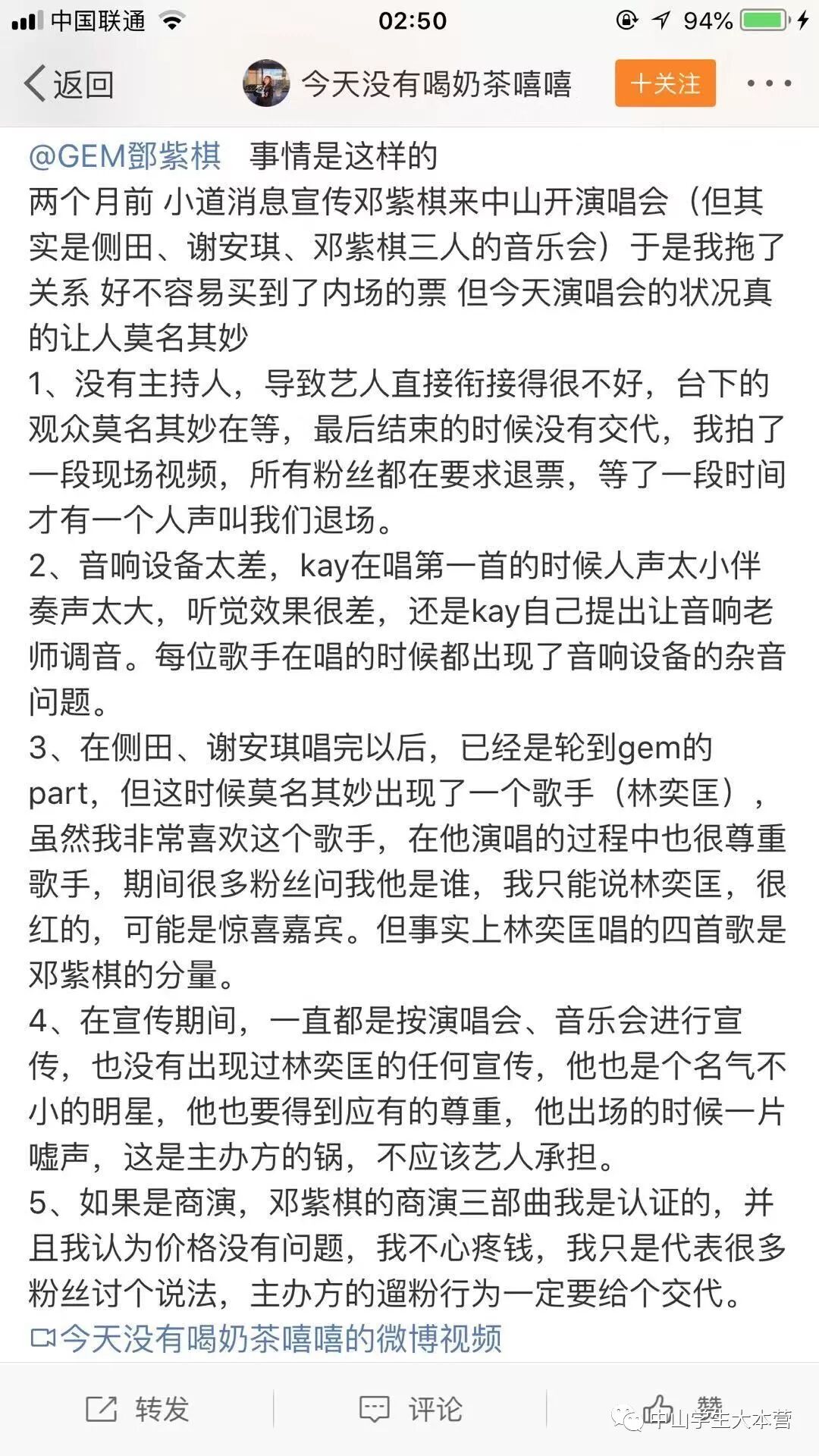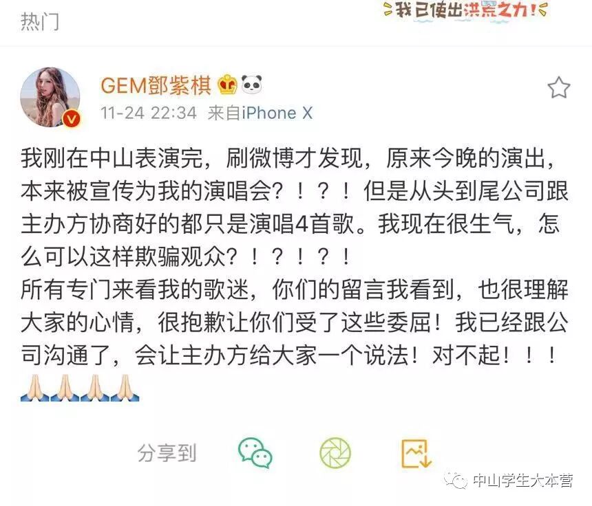 邓紫棋立刻发出微博
