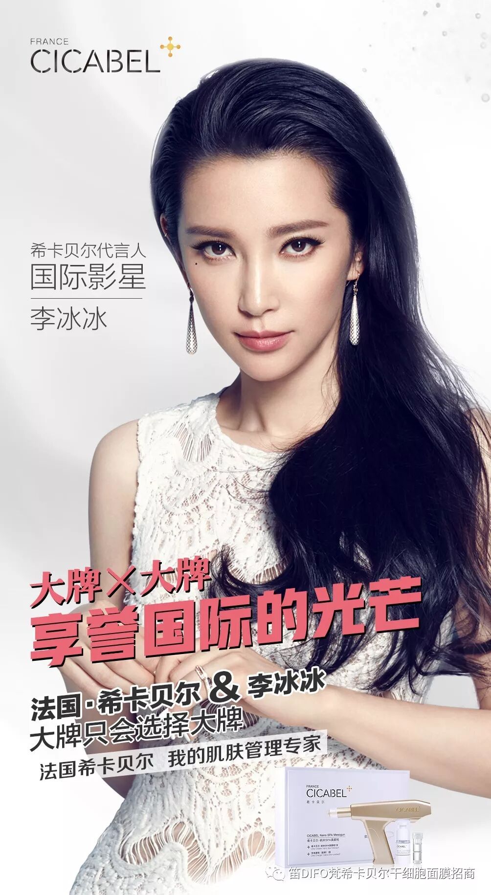 10月8日是梵大所有代理商值得欢呼的日子,梵大集团巨资邀请国际巨星李冰冰成为希卡贝尔代言人,希卡贝尔品牌将携手有颜值、有实力的国际巨星一起演绎“冻龄神话”。