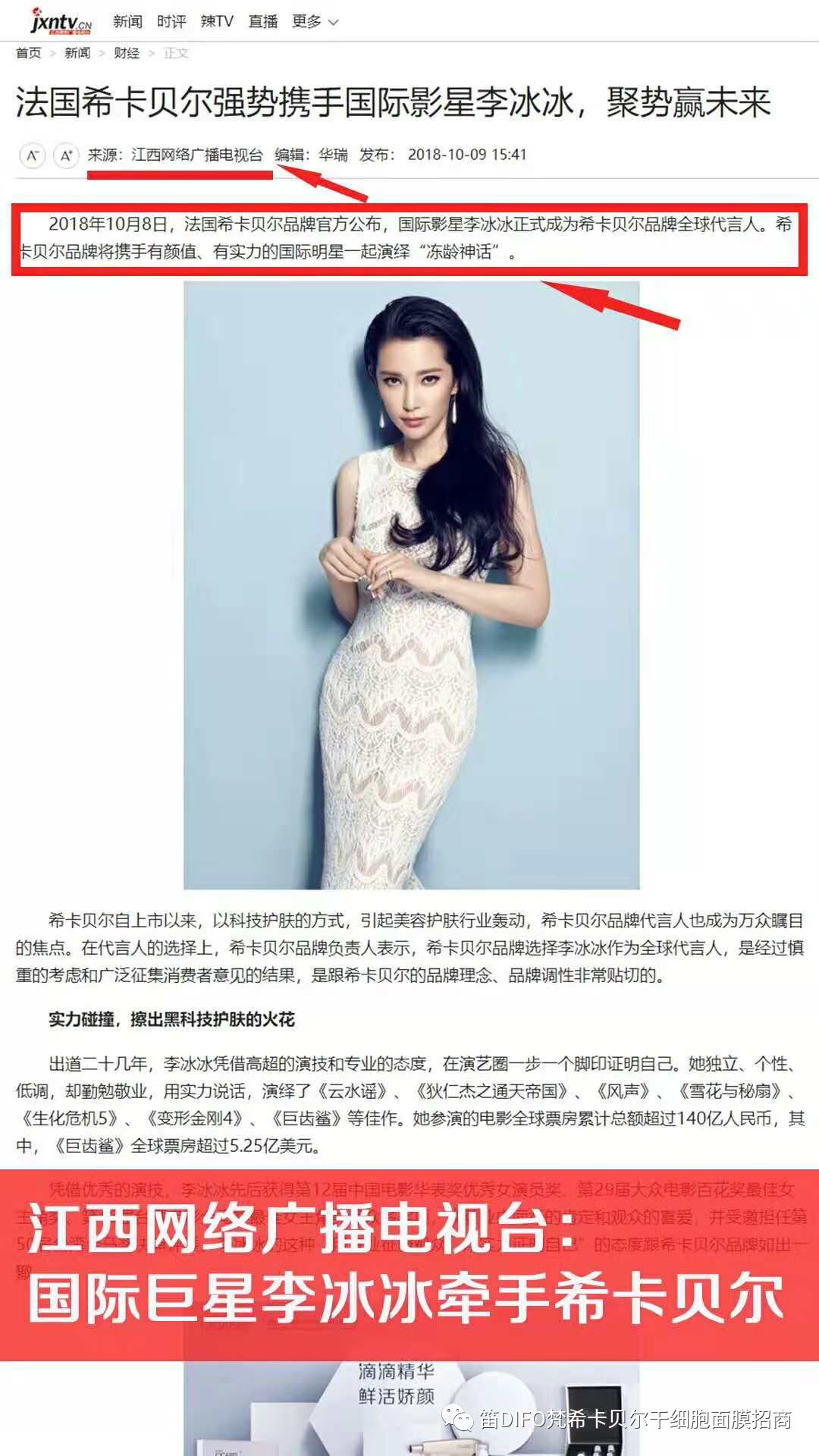 江西网络广播电视台报道:国际巨星李冰冰牵手希卡贝尔‼️