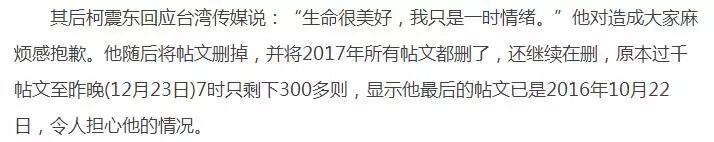 后来柯震东又回应说自己只是一时情绪,还表示生命很美好。