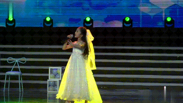 【不】扯其他,先看演出录制画面吧,只见范朵朵头顶白色头纱,身穿白色连衣裙,脚蹬白色矮高跟,公主范十足。