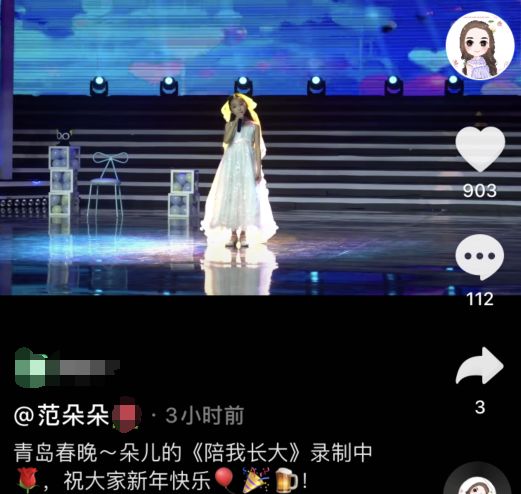 1月20日,范冰冰堂妹范朵朵在某平台上晒出一段演出视频,并配文:青岛春晚,朵儿的《陪我长大》录制中,祝大家新年快乐。