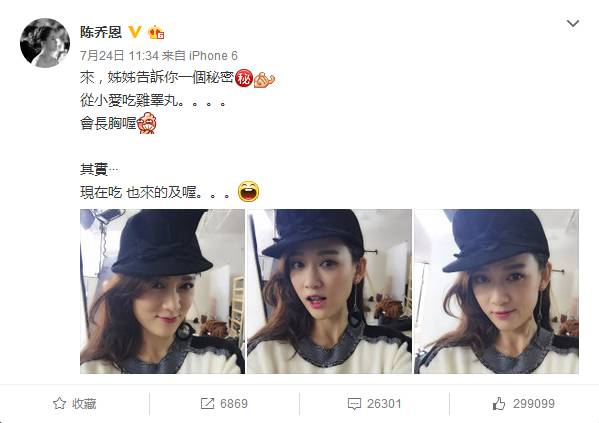 而且陈乔恩本人还转发了这个视频,大方承认自己爱吃鸡睾丸,还推荐给广大网友:可以丰胸