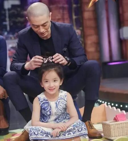之前上金星秀,霍建华还在现场技术熟练给小女孩梳头发,一看就是练过的。