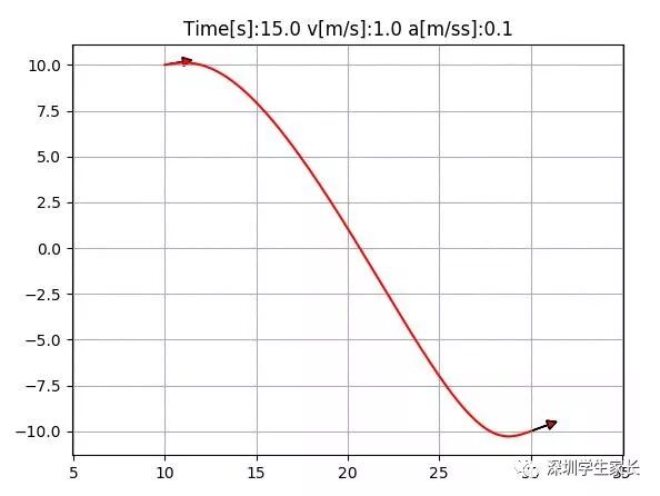 红线为目标路线,绿叉为纯追迹控制的目标点,蓝线为跟踪路线。