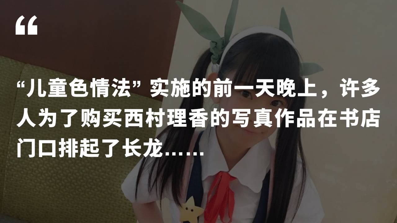 最终,“儿童色情法” 法规定,禁止出版或在网上发布未满18岁的儿童裸像,偷拍或制造儿童色情制品视为犯罪,二次元创作物除外。泰国出生的西村理香是90年代著名的少女裸模,“儿童色情法” 实施的前一天晚上,许多人为了购买她的写真作品在书店门口排起了长龙……掐指算来,从第一本少女裸体写真出版,到正式作为儿童色情制品被禁,日本用了整整三十年的时间。