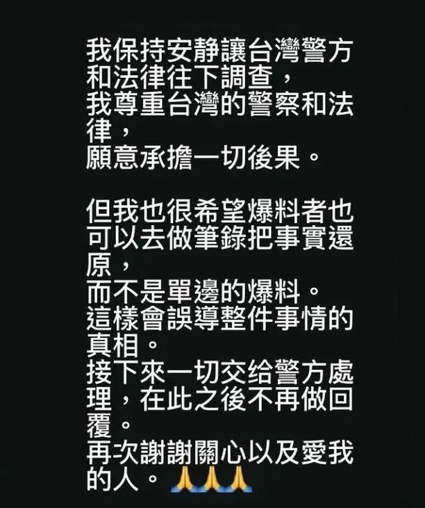他在社交媒体上发文,强调保持安静是为了让警方调查,愿意尊重司法结果并承担责任。