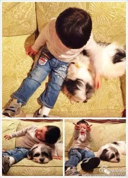 ▲萌娃+萌宠,毫无抵抗力