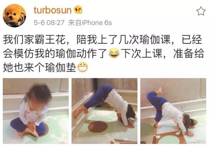 爱运动。直接培养了一个最小的瑜伽爱好者。小花这姿势好专业,萌翻了!