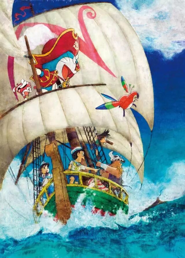 最初的航海之旅充满快乐的笑声,主角们在“新世界”海湾阳光的照耀下透漏出兴奋与期待,还有七色彩斑斓的小哆啦不时发出的“哆啦”声也是十足的惹人怜爱。