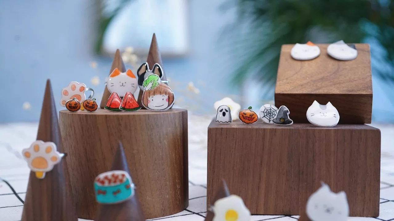 我就把我们家六爷,以及闺蜜菜菜的卡通形象,做成了耳钉和戒指,万圣节送给菜菜的礼物就是这个啦!