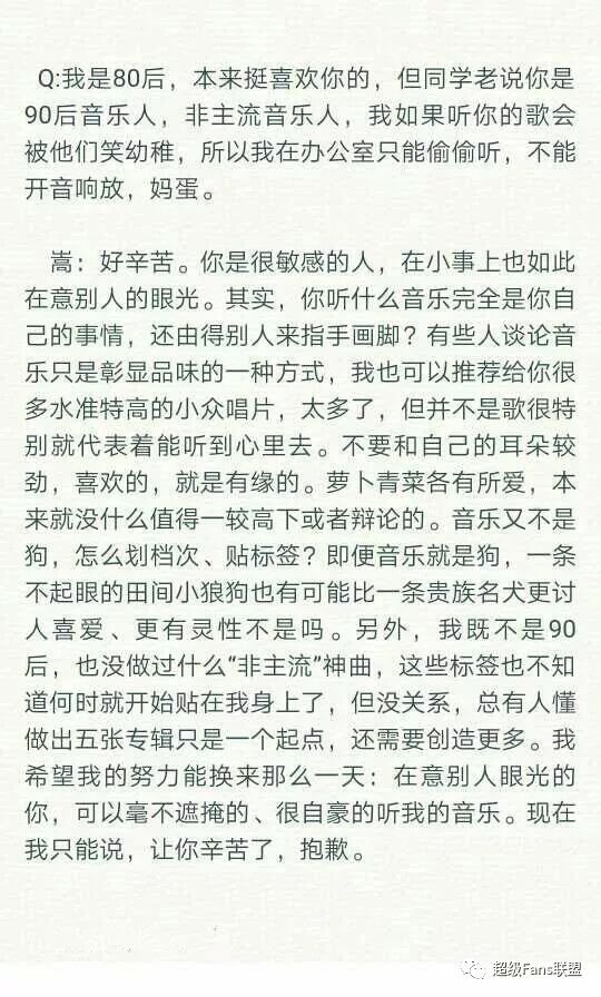 这位音乐人曾经在访谈上说过,懂他的人自然会懂,不懂的人最好不懂,最怕一知半解的人去添油加醋。每个人以舒服且坚韧的方式立足于这个世界就够了。