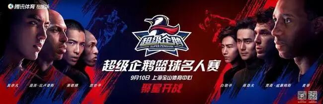 9月10日晚,由腾讯体育主办的首届超级企鹅篮球名人赛在上海宝山体育馆举行,由麦蒂、“白巧克力”杰森·威廉姆斯、孙杨等人组成的明星蓝队最终以84:83战胜了吴亦凡、马布里、比卢普斯等率领的明星红队。