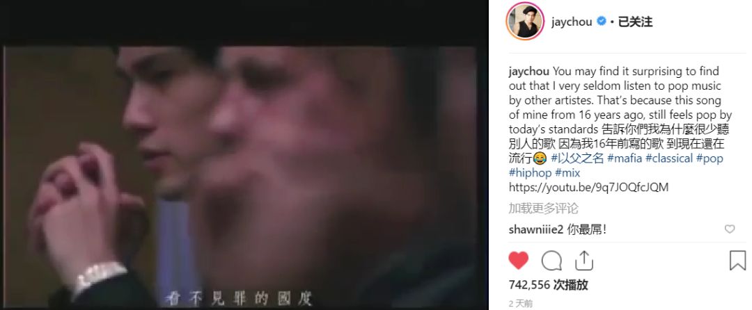 然而,他会在社交网络上分享了《以父之名》的MV,并配文“告诉你们为什么我很少听别人的歌,因为我16年前写的歌,到现在还在流行。”