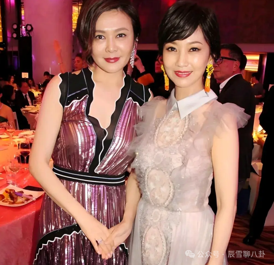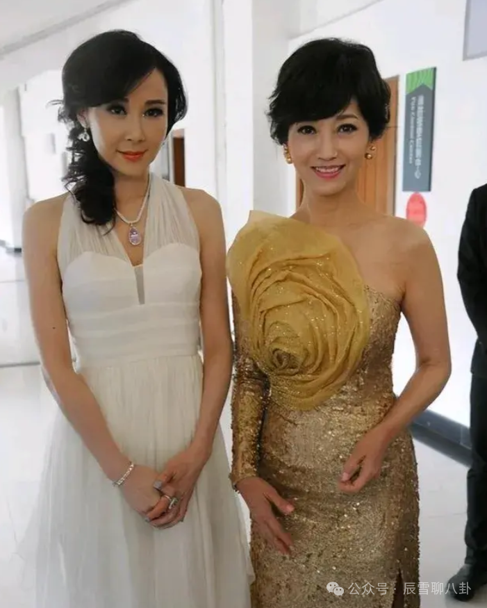 在怼脸拍的同框照中,赵雅芝穿着白色旗袍,跟身边穿着黑色礼服的林青霞看上去不分上下。