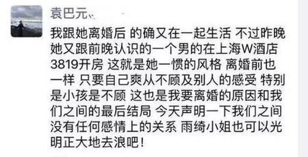 袁巴元与张雨绮分手后互撕,他的第一任前妻发声了!